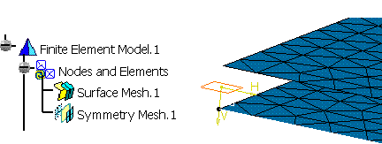 This use case shows how to create a symmetry mesh part. Symmetry transformation can be applied to a 1D, 2D and 3D mesh. This scenario requires "FEM Surface (FMS)" product to create 1D or 2D transformed mesh part and FEM Solid (FMD) product to create 3D transformed mesh part. This macro opens an Analysis document. A symmetry mesh part is created on a Surface mesh part. The surface mesh part already exists in the document.