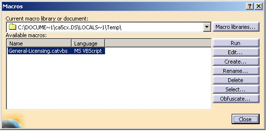 For more details, on how to run a macro, and set macro libraries, consult in the V5 documentation, Infrastructure Solutions, Infrastructure Users Guide, the Recording, Running And Editing Macros topic.