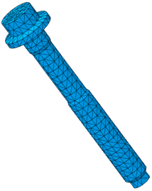 The objectives of the tetrahedral meshing procedure for 3D bolts are to create a planar section of element faces across the bolt shaft and a complete mesh that is suitable for analysis. The pretension cutting plane must coincide with the planar section of element faces to ensure that the bolt pretensioning tool will work. Nonplanar element faces at the cutting plane may cause an error during the analysis.