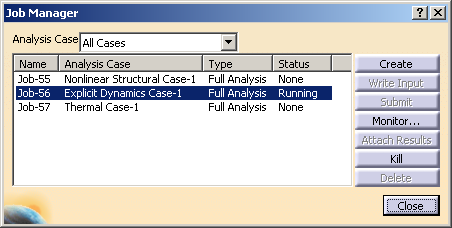The Job Manager dialog box appears with a list of the jobs that you have created for the current analysis case.