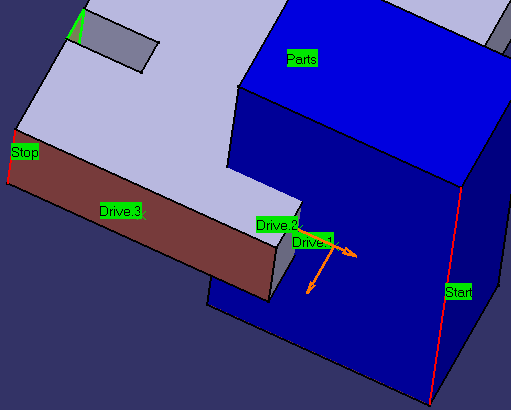 Drives 13 and 14 are non contiguous: they belong to different solids. An arrow appears on Drive 6 indicating the orientation for the contiguous section. Make sure that it is oriented outward.