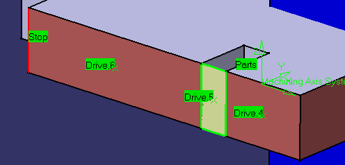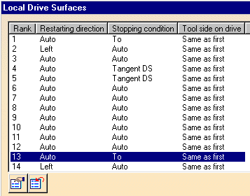 condition to Tangent DS. Access the Local Drive Surface 5 dialog box and set Stopping condition to Tangent DS. Check the validity of the operation by replaying the tool path.