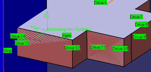 to 13 on the flanks of the gray solid. Select the last Drive 14 on the