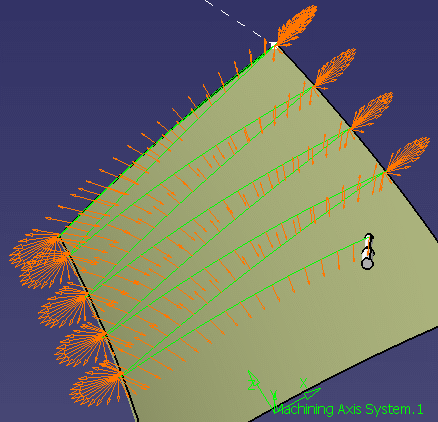 A default reference tool axis (A) is displayed. You can double click on this axis to modify it. You can also click the tool axis (A) symbol in the Strategy tab page to modify the orientation of the reference axis. | |