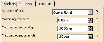 Note that interpolation axes are applied at contact points on the trajectory. The application point of an interpolation axis must be on a selected face. If the point is not on a selected face, it will be projected onto the part. This may give undesirable results. Once the tool can be positioned at each point on the trajectory, you can set the collision checking option on the Geometry tab page. |