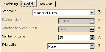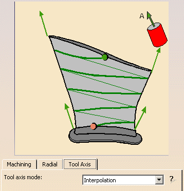 positioned at each point on the trajectory. If the tool cannot be positioned at each point on the trajectory, adjust the default interpolation axes and possibly insert additional interpolation axes until this criteria is satisfied. You can add an additional axis by clicking one of the interpolation axis symbols in the Strategy tab page then either selecting an existing point on the part or selecting anywhere on the part. You can delete an additional axis by right-clicking it