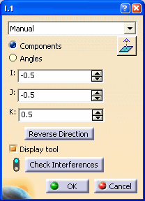 Note that interpolation axes are applied at contact points on the trajectory. The application point of an interpolation axis must be on a selected face. If the point is not on a selected face, it will be projected onto the part. This may give undesirable results. Remember also that points created on the fly are not associative, so it is best to avoid creating points in this way.