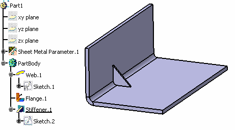 - a Part Design feature can also be created after Aerospace Sheet