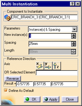 | 5. | Make sure the option Define as Default is on. If it is so, the parameters you have just defined are saved and can be reused by the Fast Multi-Instantiation command. | ||||