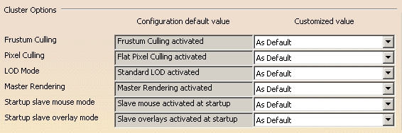 values for the following cluster parameters:Frustum CullingAlgorithm discarding objects outside the viewing pyramid (called "frustum"). This option is especially useful when zooming several times in succession. The values you can set are: