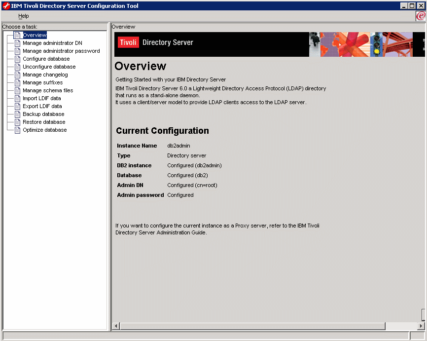 For detailed information, please refer to your IBM Tivoli Directory Server Installation and Configuration Guide Version 6.0 which walks you through a typical installation and explains how to configure the directory server. After You Install and ConfigureYou then have to: