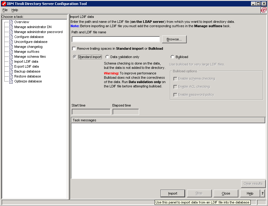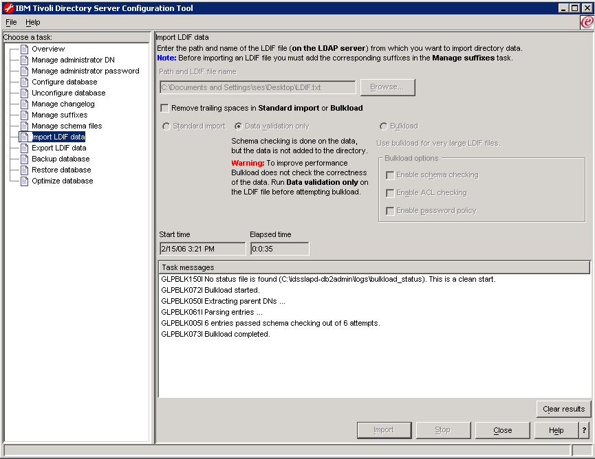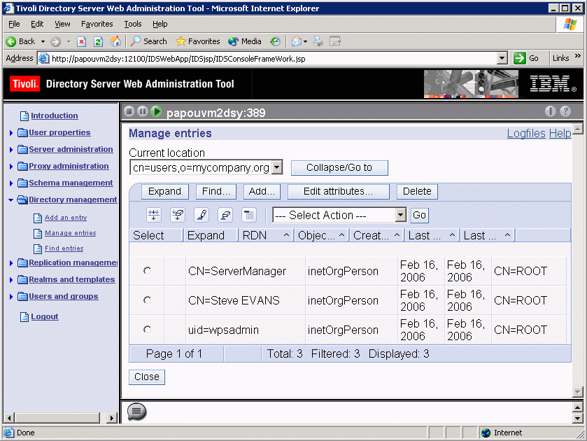 Customizing the LDAP RepositoryThe following scenario is a default implementation and involves editing your corporate LDAP repository by adding three users: wpsadmin, ServerManager and Steve Evans). However, if you do not want to edit your corporate LDAP repository, you are not obliged to do so, as explained later. For the purposes of our scenario, we continue to use IBM Tivoli Directory Server 6.0 on Windows, and use the IBM Tivoli Directory Server Configuration Tool (idsxcfg). For detailed information about the tools and techniques described in this section, refer to the section "Configuration - Using the IBM Tivoli Directory Server Configuration Tool (idsxcfg) - Importing and Exporting LDIF data" in your IBM Tivoli Directory Server Installation and Configuration Guide Version 6.0.