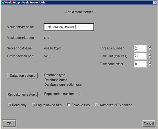 The Vault Setup - Vault Server - Repositories dialog box appears.