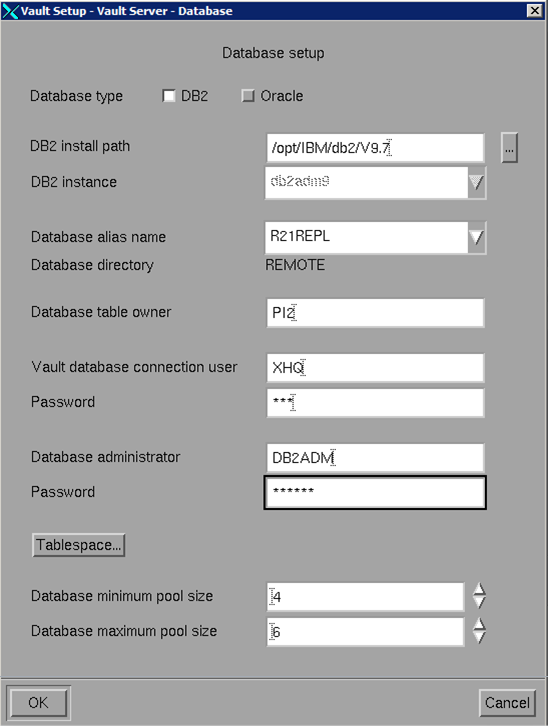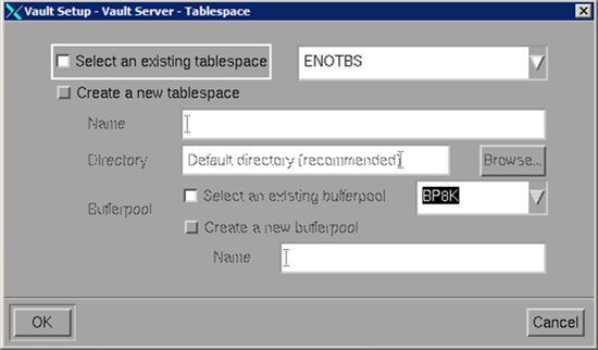 The Vault Setup - Vault Server - Tablespace dialog box appears.