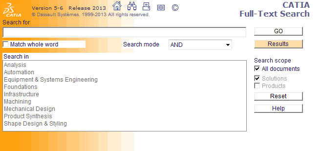 documentation search engine on CATIA documentation for illustration