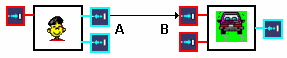 In the example above, for B to be valuated, the user must execute A. The links existing between the behaviors are known as "data flow". They enable the user to define the order in which the behaviors will be executed.
