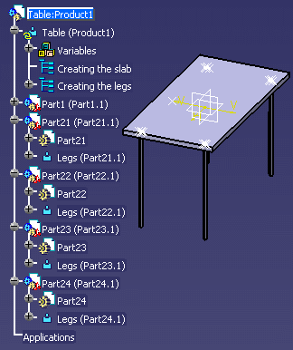 the specification tree, and click the Table icon to type the product.