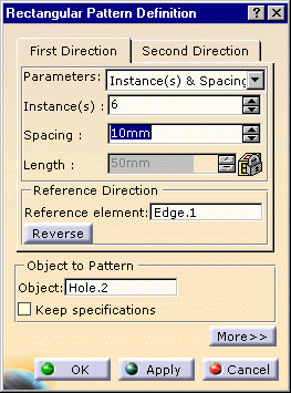 For more information about patterns, refer to CATIA - Part Design. | |||||||||