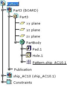 The idf file contains the board, the component and the holes. During the import, the holes coordinates are analyzed and recognized as defining a pattern. If you move or delete the component, the pattern will be updated (see the next task). |