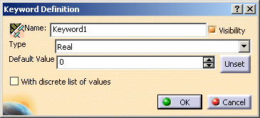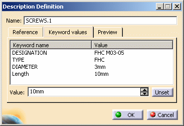 part family definition and keyword values by selecting the corresponding