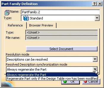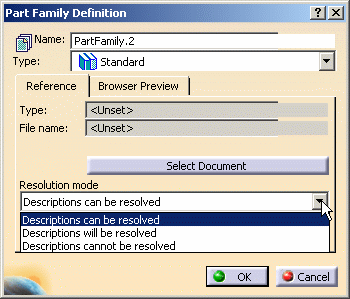 item from the contextual menu. Note: If the part family is not resolved,