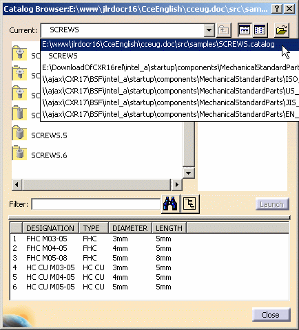 current chapter name is indicated at the top of the drop-down list. This drop-down list gives you access to the last five catalogs