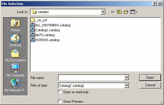 from the Tools toolbar or by selecting the Tools > Open Catalog...