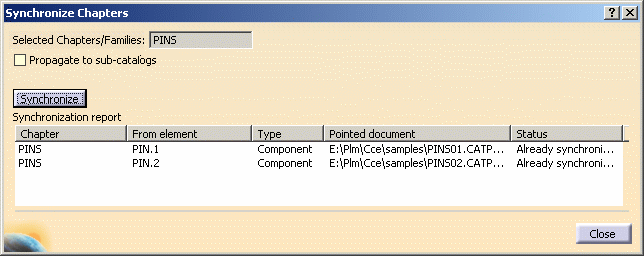 Note: The Propagate to sub-catalogs option does not apply to part family synchronization. It only concerns chapter synchronization. | ||