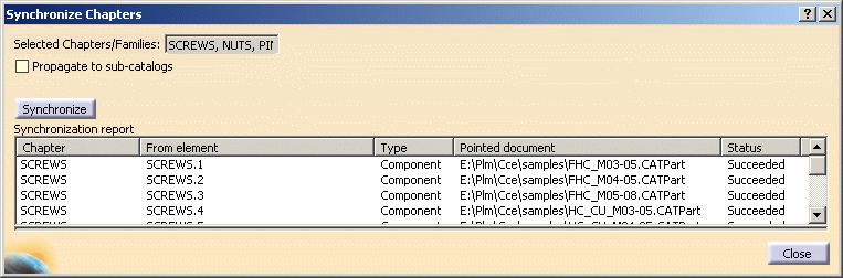 In the Catalog tree, select the chapters to be