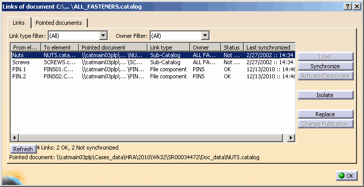 The Links of document dialog box appears.