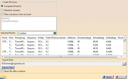 actual fiber direction at the inspection points.