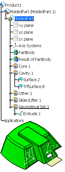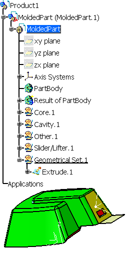 on the part. In the example below, we have extruded the lower edge of the large Slider/Lifter face (in yellow) to build a surface (Extrude.1). ![]() If, for any reason, you want to move this face to the Cavity area, you will lose the structure of Extrude.1. The action Transfer an Element moves the face to another area without destroying the structure of any element built on it. |