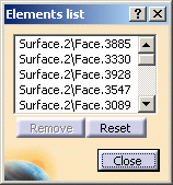 continuity, the dialog box indicates the number of elements selected. Removes selected elements from the list. Resets the list of selected elements. Cutting ElementDisplays the name of the element selected as a cutting element. Element Destination
