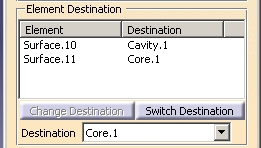 Switches the destination of the computed surfaces. Becomes active when an element is selected in the list and changes its destination to that of the Destination field.