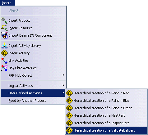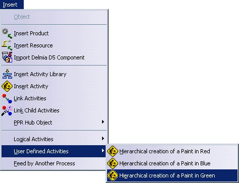 After using Add Process Library to Use, the new activities can be seen by selecting Insert> User Defined Activities (as above) or by using the Add Activity command (below).