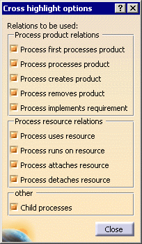 and use the Cross-Highlight Options dialog box. Select the relations that should be taken into consideration for