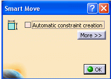 The application detects a possible constraint between the axes. As the option Create constraint is on, the application can set a coincidence constraint between both axes. |