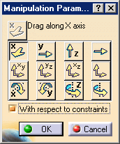 A clash is detected only when the With respect to constraints option is checked in the Manipulation parameters dialog box: |