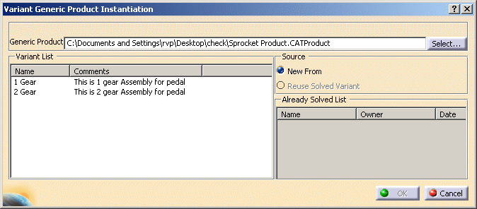 file. Select the SprocketProduct.CATProduct file that was saved in the