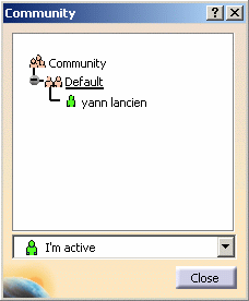The Community dialog box is your Instant Collaboration central workplace. From there you will be able to access all functionality via contextual menus as well see the different people and groups currently connected to the community.