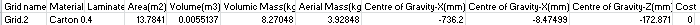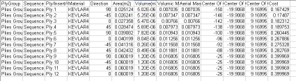 the area, mass, center of gravity and mass on a ply, a sequence, a plies