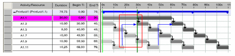 If a Precedence constraints relationship exists between two processes, the first process must first end before the second can begin. In this case the start-time of the second process does not have to fall directly after the end-time of the first process. The start-time can also be set for a later point in time. |