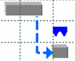 A blue broken-lined arrow between two processes in the Gantt chart