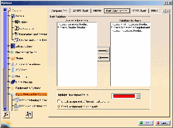 Set the options before starting the session. Assignment of child parts is deactivated in the standard configuration.