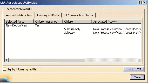 not linked to a process are displayed under Unassigned Parts.