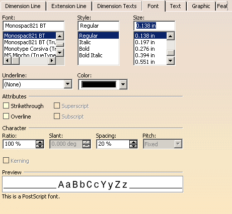 - Underline: underline the dimension text.