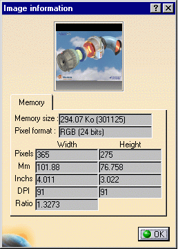 Viewing information about vector imagesYou cannot edit vector images (*.cgm. *.gl, *.gl2) inserted in a drawing, but you can, however, view information about them. To do this, simply double-click a vector image in a drawing. This will display the Image information dialog box. To exit the dialog box when you are done reviewing the image-related information, click OK. |