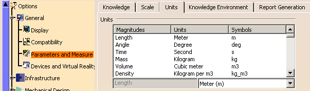 the Tools > Options > General > Parameters and Measure