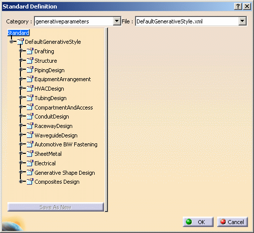 launch the Standard Definition dialog box. Choose the drafting