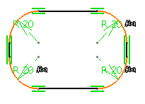 This task shows how to create a corner (arc tangent to two curves) between two lines using the different trimming options. | |||||